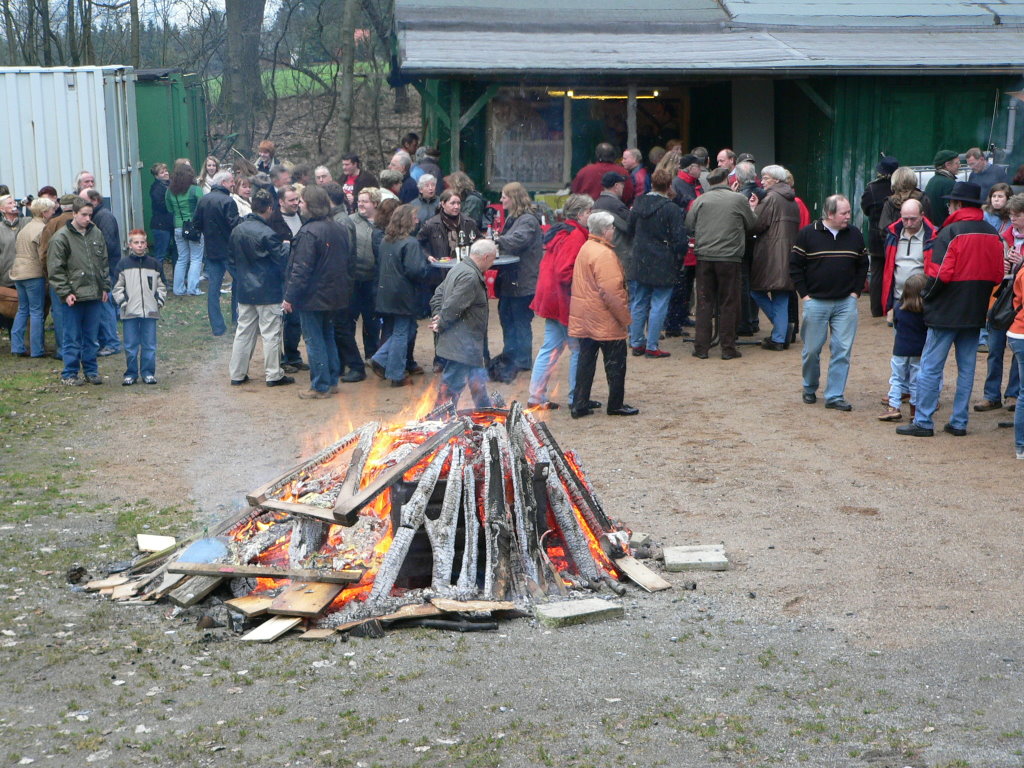 Das Osterfeuer auf dem Bauplatz an der Beyenburger